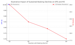 Key Takeaways: A sustained 5–10% decline in bookings over successive quarters can translate into a multi-point EPS reduction and a double-digit percentage de-rating of P/E multiples, depending on leverage and effective CAPEX ramp for productization.